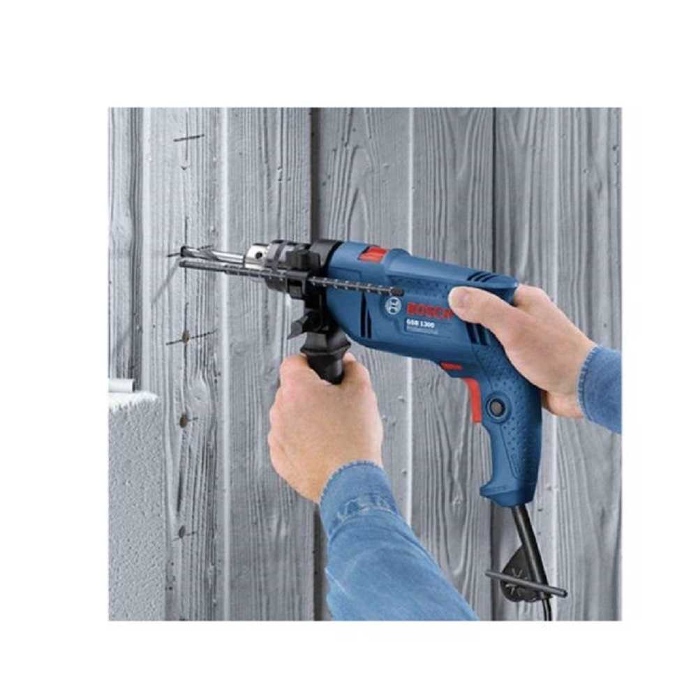 La perceuse à percussion GSB 1300 est un outil électroportatif puissant et fiable avec un puissant moteur de 550 W, un Mandrin à clé 13 mm, et une poignée supplémentaire et butée de profondeur. Le Moteur et engrenage entièrement montés sur roulements à billes pour une longue durée de vie.