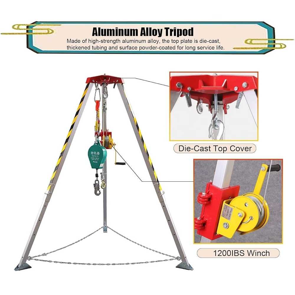 - Construction en alliage d'aluminium --> Le kit de sauvetage sur trépied est fabriqué en alliage d'aluminium à haute résistance et la plaque supérieure est traitée avec un processus de moulage sous pression, qui est robuste et durable. Les autocollants réfléchissants jaunes et noirs améliorent la visibilité.