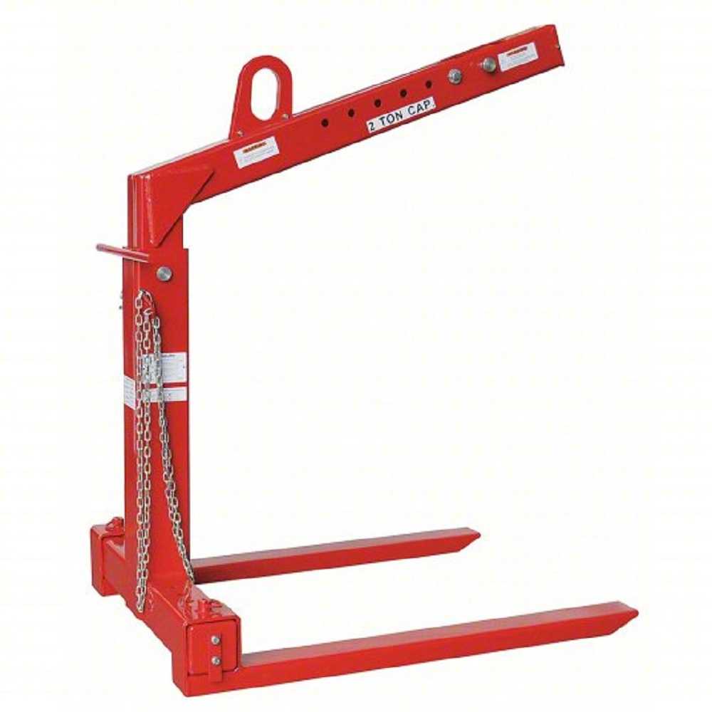 Fourche à grue DEMA 2 pouces / fourche à palettes 2 000 kg d'origine. Indispensable pour soulever des charges sur chantier ou lors des opérations de déchargement, confortablement, en toute sécurité et avec professionnalisme, et pour les déposer avec précision.